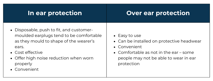 - Comfort – employees may have different preferences and requirements for ear protection