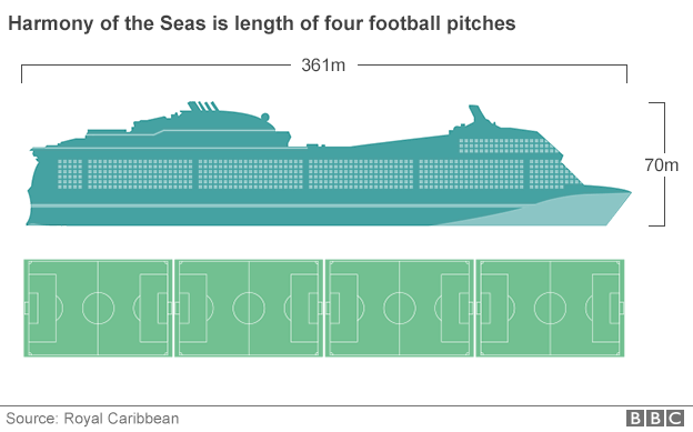 Harmony of the Seas is the world’s largest cruise ship at 362m long, and can hold more than 8,000 passengers and crew.