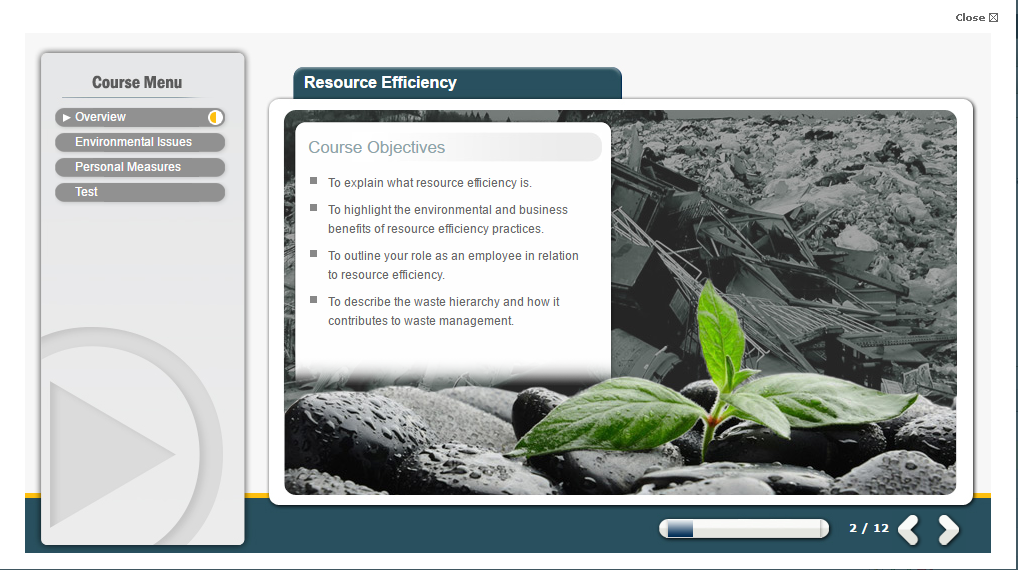 An increasing amount of Pre-Qualification-Questionnaires and job applications ask for evidence of environmental training for the workforce and that is exactly what our eLearning Environmental Awareness course can achieve!
