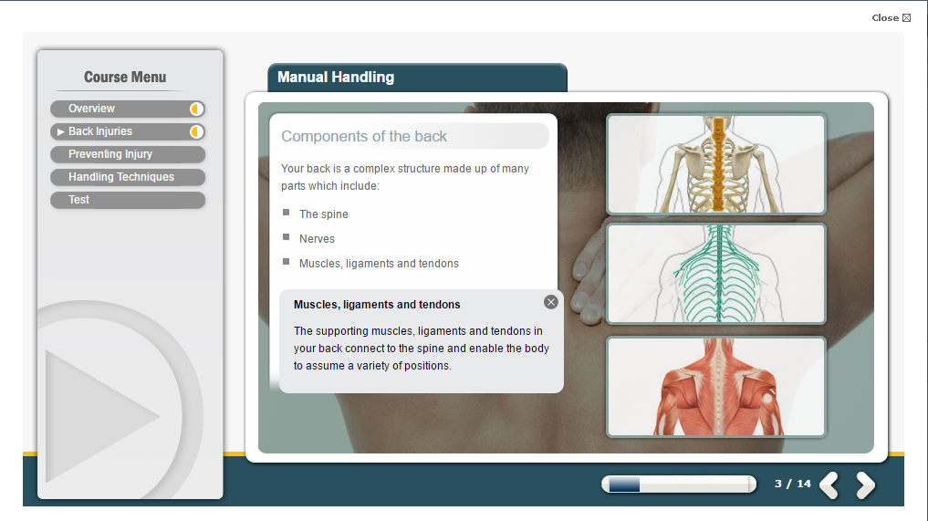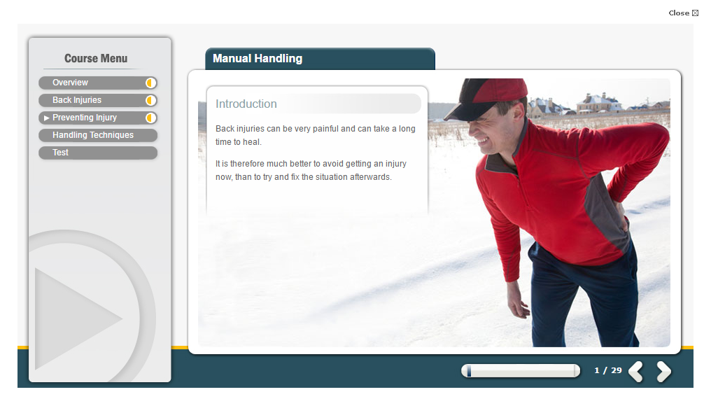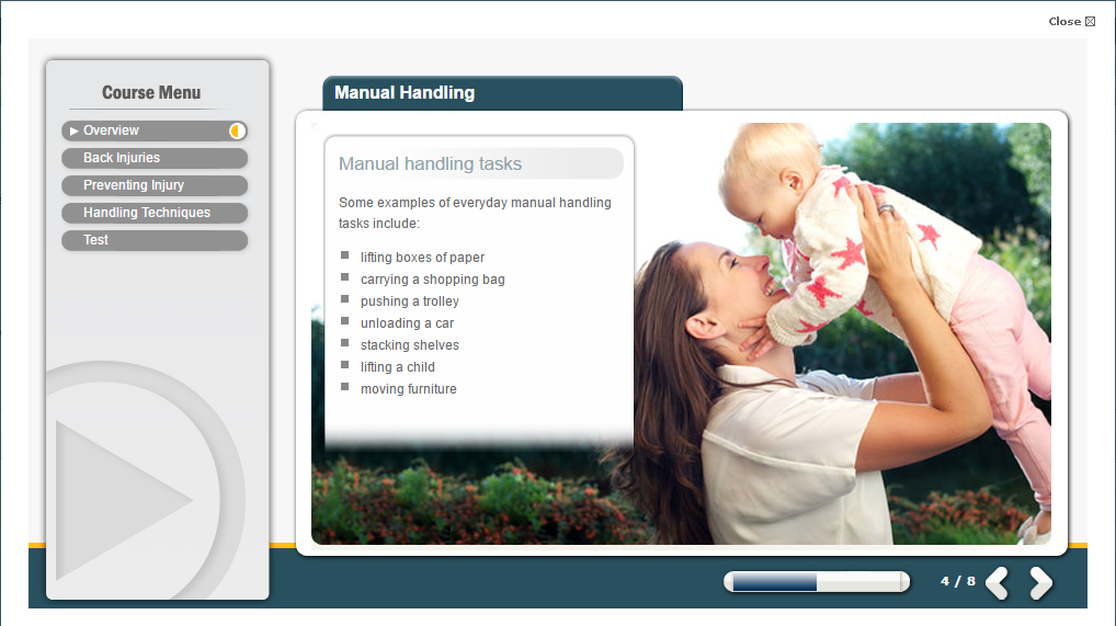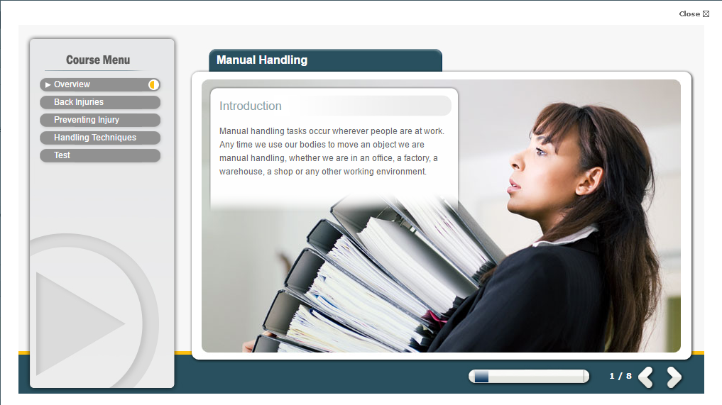 The Manual Handling Online Training course is the ideal way to train employees in the basics of manual handling. It is also perfect for employees in low risk environments.