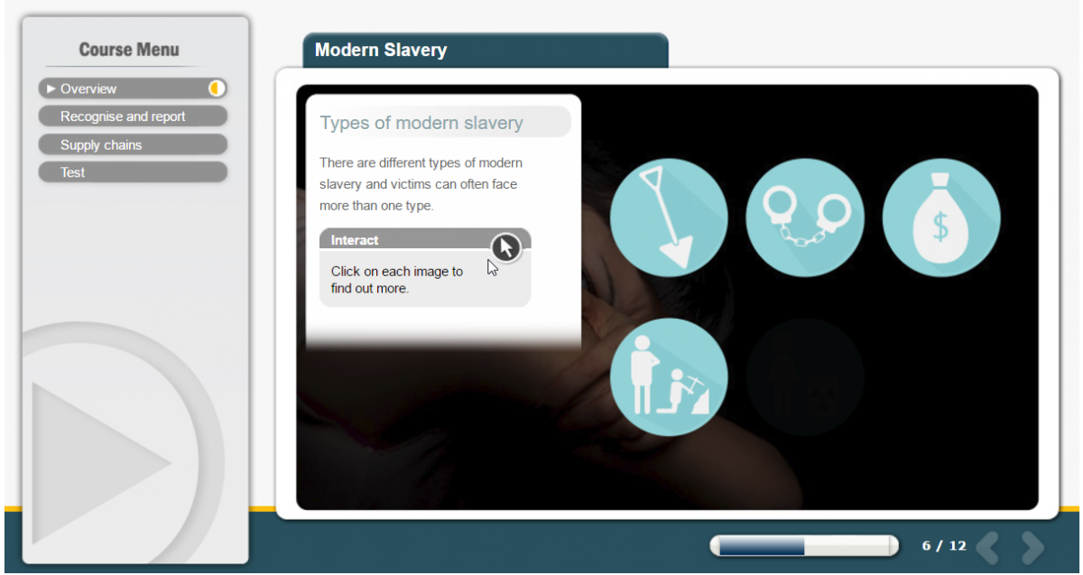 The Modern Day Slavery training is an interactive course which defines Modern Slavery and explains the different forms of contemporary slavery. It successfully provides the information your employees need to identify slavery in society and in your organisation. Additionally, delegates are provided with guidelines to promote good business practice and how to safely report cases of exploitation.