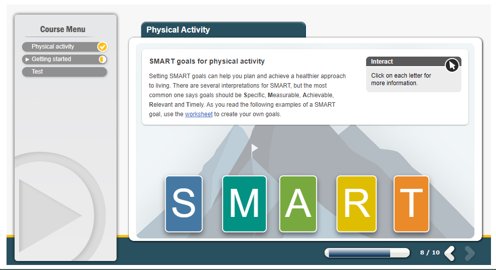 Being physically active can help improve your overall health and wellbeing, there is a link between exercise and mental health. However, with all the different variations of exercise out there, it can be difficult to know which to do. This course will help you to understand different types of physical activity with recommendations on how much you should do every week. It will also help you to fit in being physically active amidst a busy working lifestyle, namely through the method of SMART goals which are aimed to be achievable and measurable.