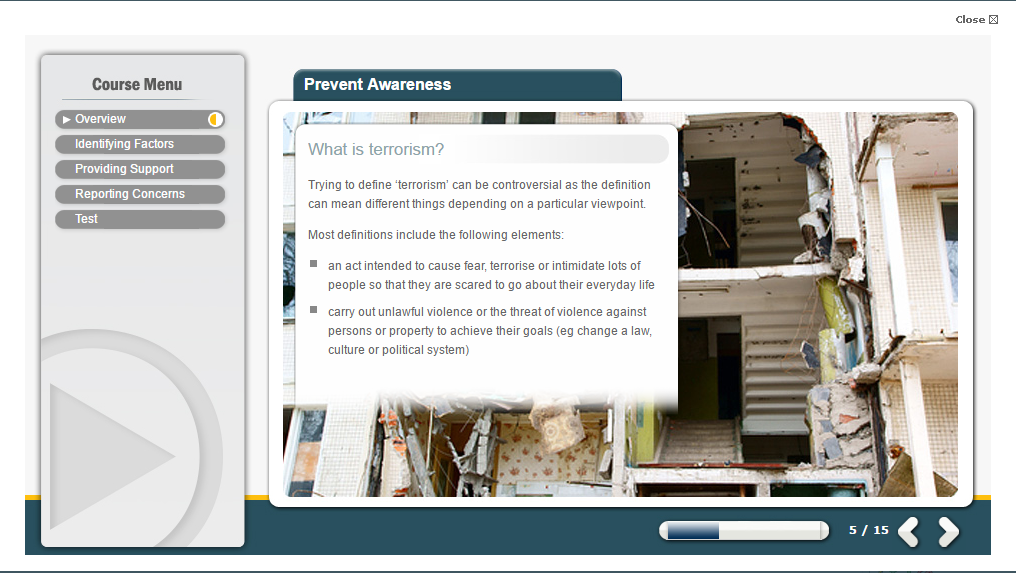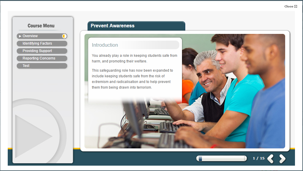 The Prevent Duty Training has been designed for people who work in a UK educational institution, so that they can develop a clear understanding of their duties under the Counter-Terrorism and Security Act. The course examines the Prevent strategy and describes different approaches to implementation. Please Note This course refers to UK specific law only.   If you are interested in this, check out our Security and Terror Alerts Online Training Course as well!