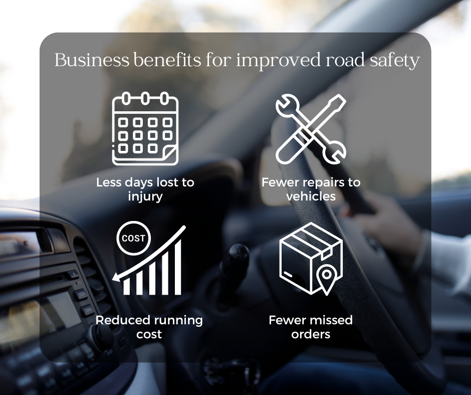 From a business-focused point of view, there are many benefits to managing work-related road safety. If fewer road incidents occur, this would mean: