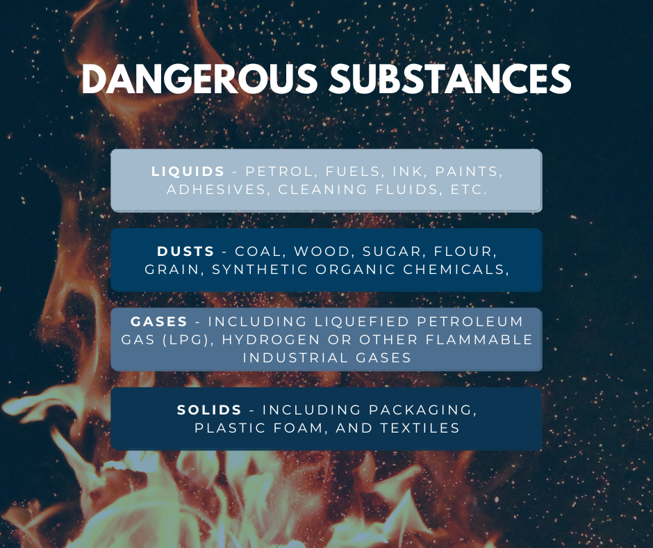 Work involving flammable substances like gases, vapours, mists, or combustible dusts can lead to fires or explosions if mixed with air and ignited. These incidents can cause severe damage to lives, property, the environment, and businesses.