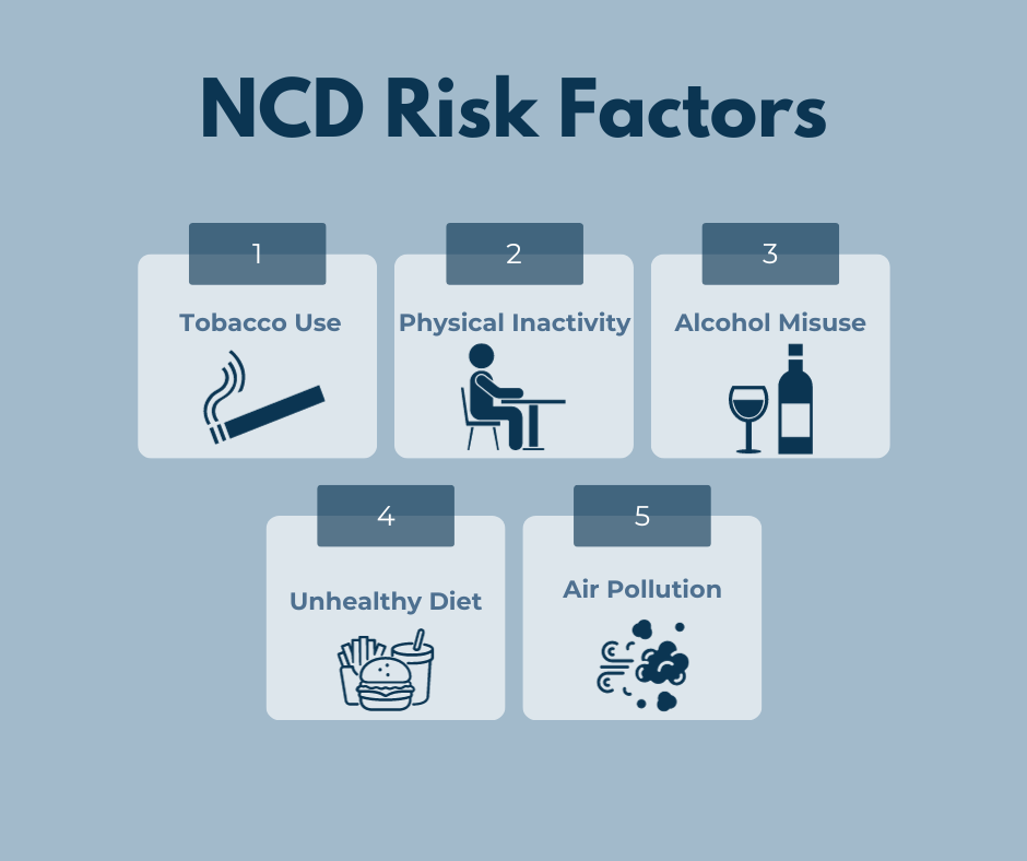 There are five major risk factors in developing an NCD: