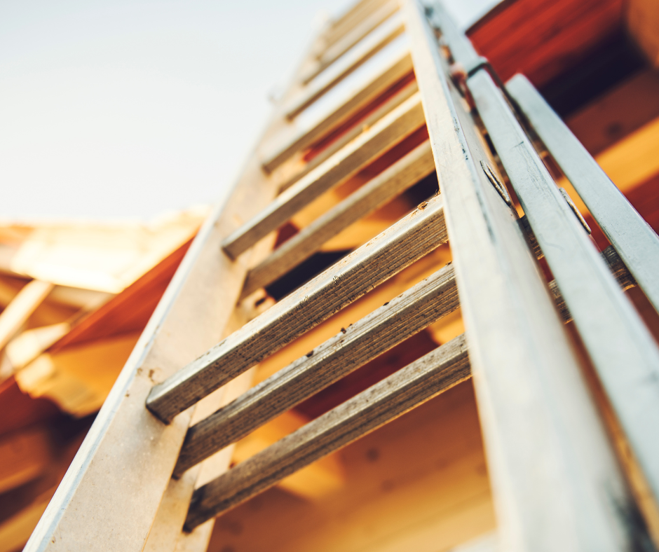 He had climbed up the first floor using a ladder at the stairwell opening, which had been covered with temporary boards. The boards were slid apart to allow access to the first floor.